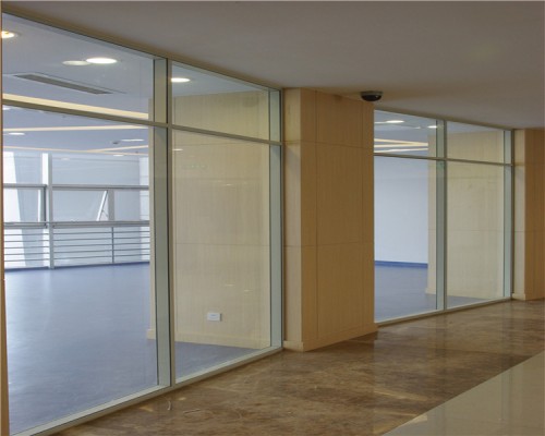 一、 上下門軸必須在一個垂線上,玻璃門必須采用鋼結構的橫梁做骨架,上軸必須焊接在橫梁上,因為上門軸是整個玻璃門的支撐點,必須要牢固,禁止采用上部橫梁采用細木板木龍骨結構,因為上門軸與木制作結構連接點只能使用自攻螺絲固定連接,由于開門次數(shù)多,時間長了使上門軸容易脫落,造成危險。